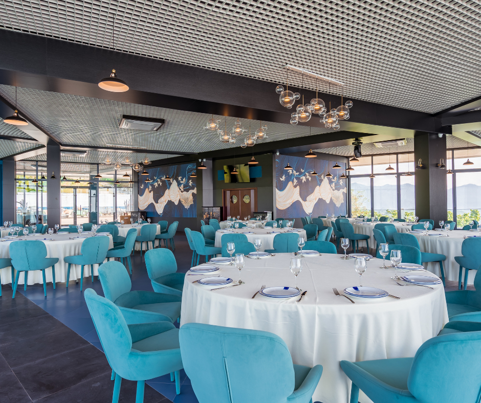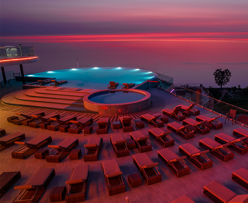 Он расположен на террасе 5-го этажа. Он имеет полукруглую форму и до краев бассейна наполнен соленой водой, что создает иллюзию его единения с морем.