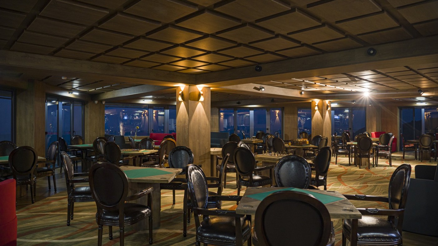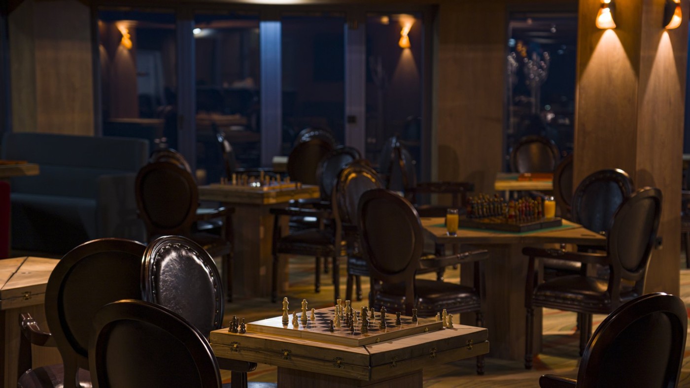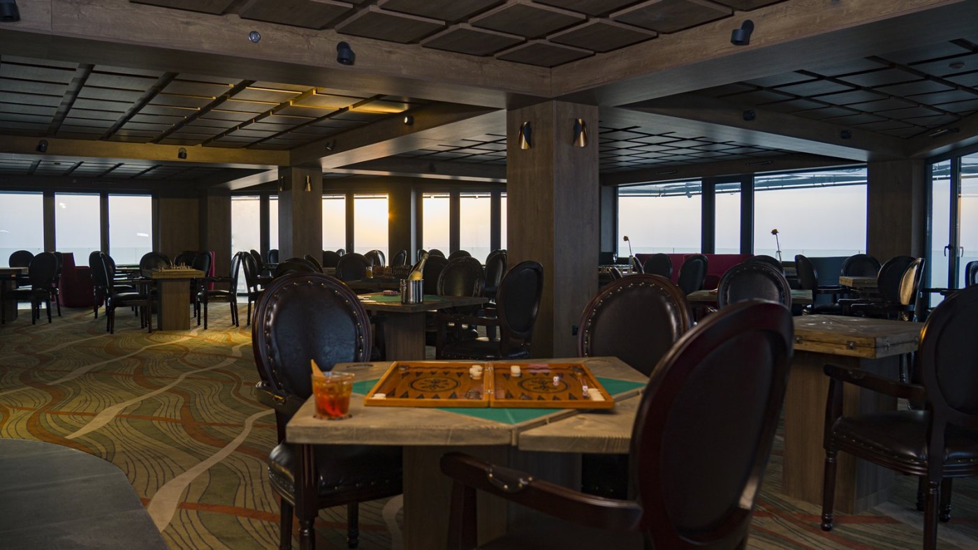 Родители могут наблюдать за игрой своих детей в детской площадке через большое стекло, одновременно наслаждаясь различными напитками и сигарами и играя в шахматы, шашки, нарды, карты и тд.