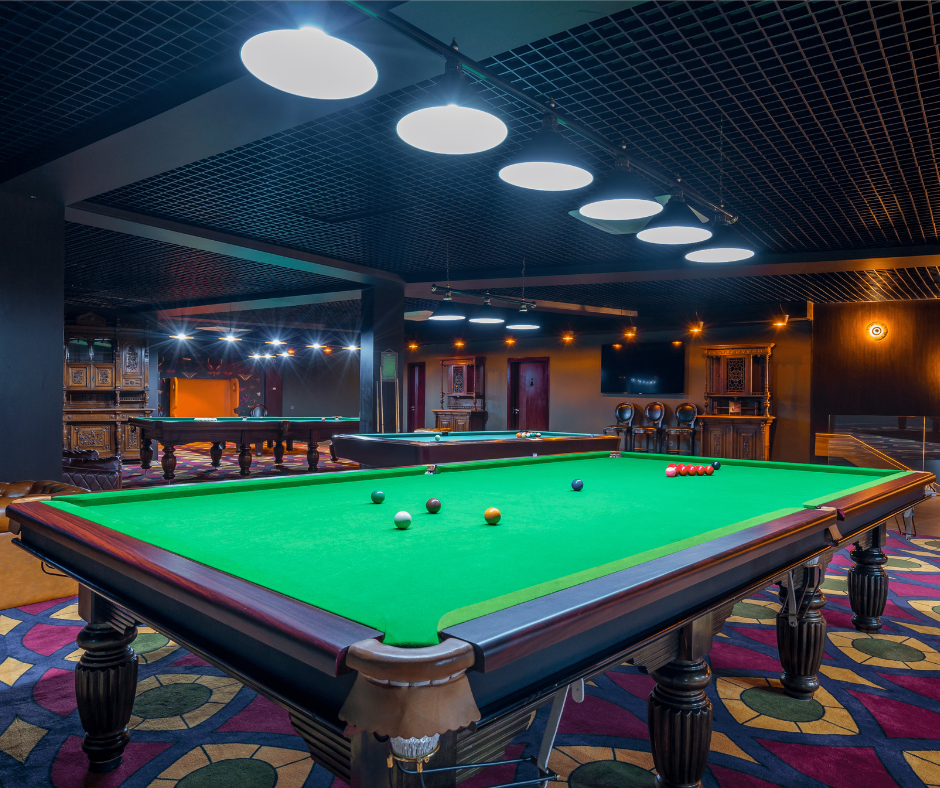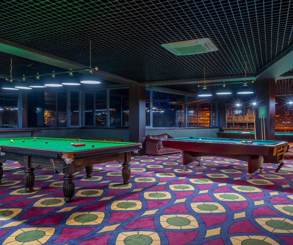 предлагает профессиональные столы всех видов: русский, снукер, пул и карамболь. Гости могут играть и наслаждаться различными напитками и угощениями в баре клуба, или в кафе на близлежащей террасе, которая в свою очередь открывает незабываемый вид на черное море и город Батуми.