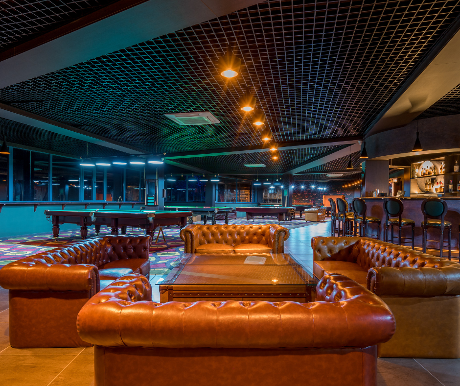 Предлагает различные напитки и коктейли. Расположенное тут же на открытой террассе Кафэ предложит Вам различные снэки и барбекью.
