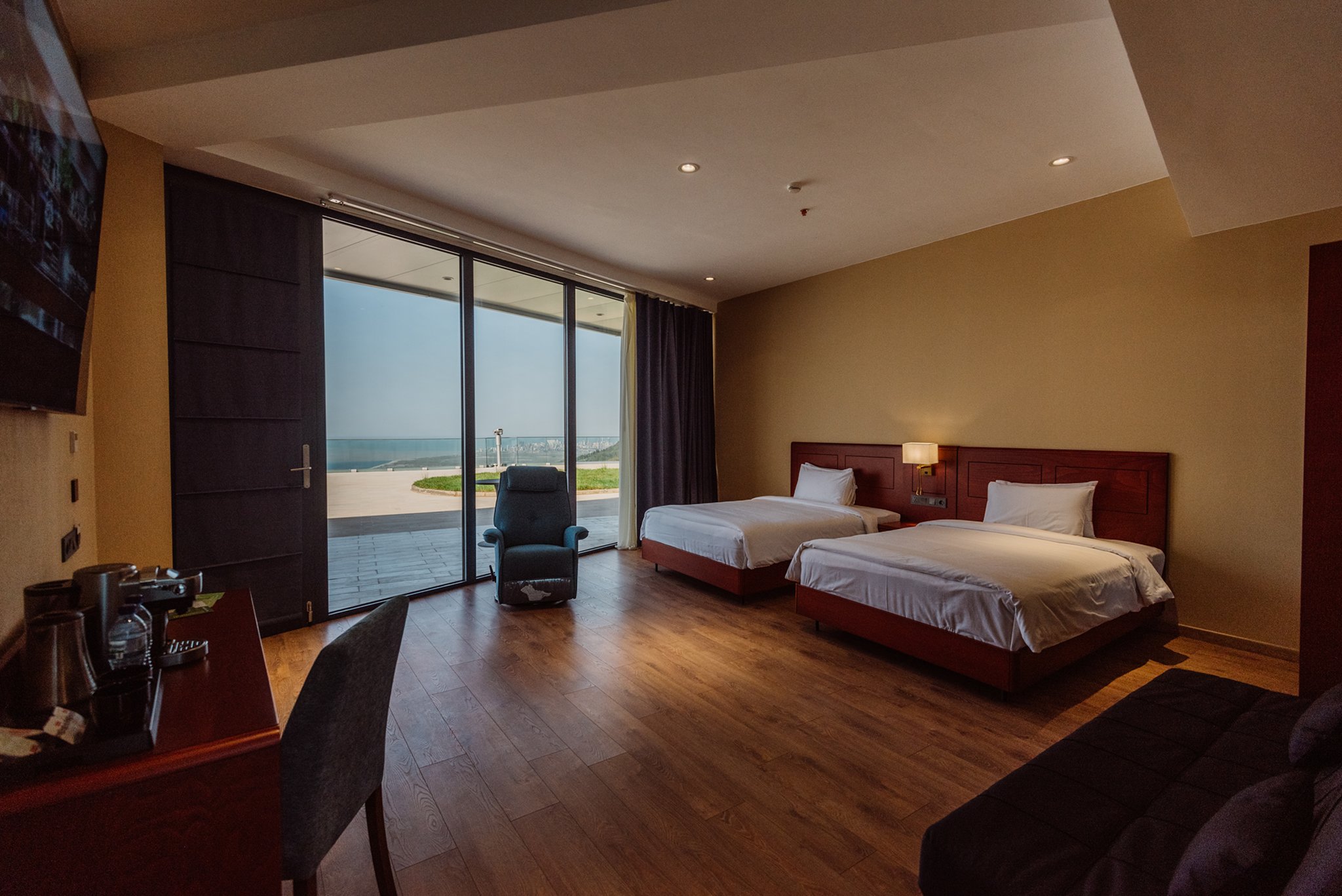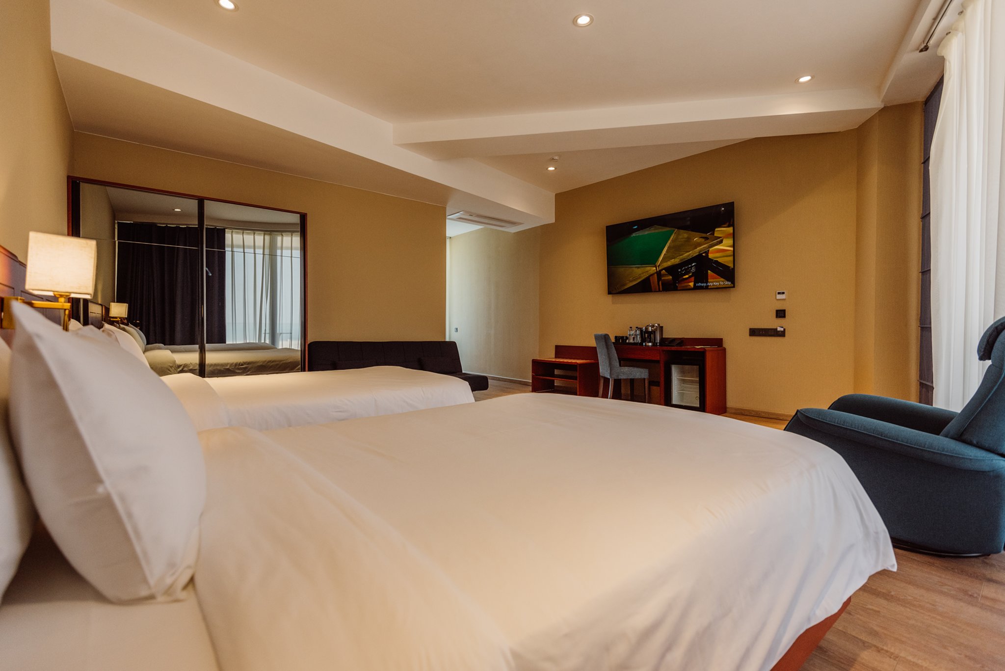 одна спальня, две большие кровати размером 140х200см в цену номера входит завтрак на два человека
